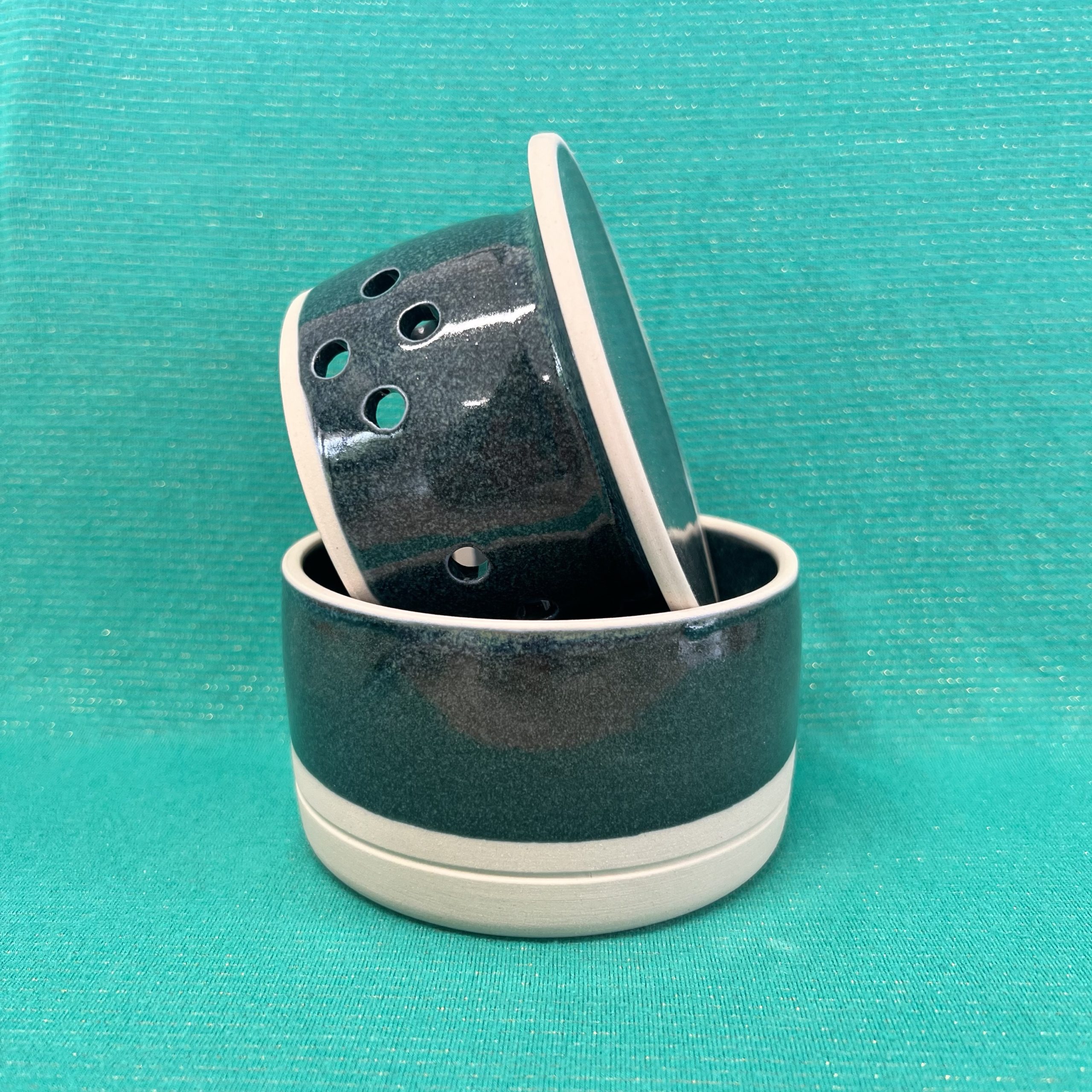 Beurrier à eau en céramique tourné et émaillé vert canopée.