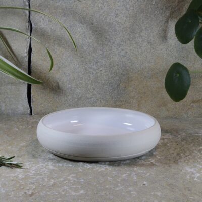 Assiette creuse tournée, en grès émaillée blanc « Écume ».