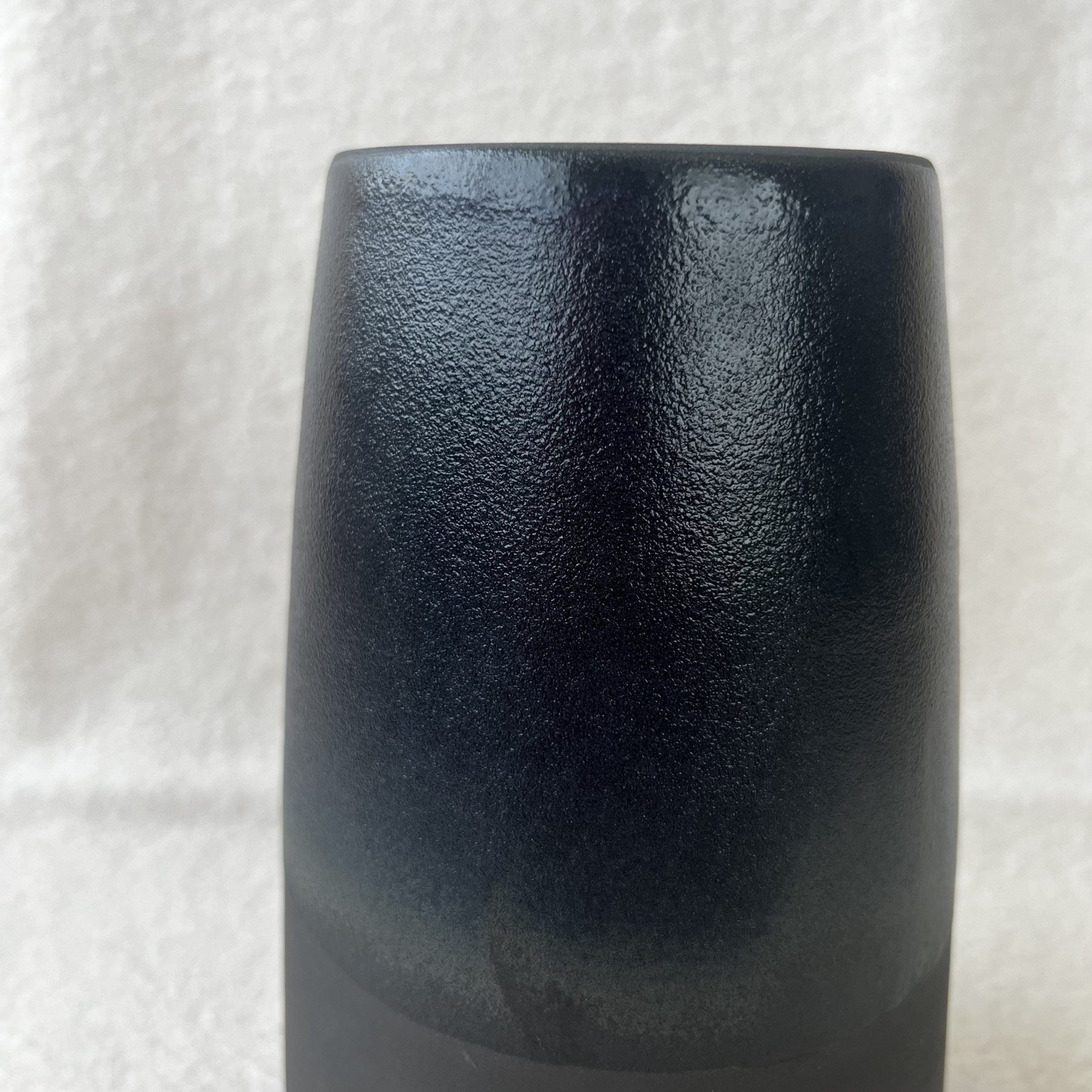 Vase en grès noir tourné et émaillé bleu cobalt.