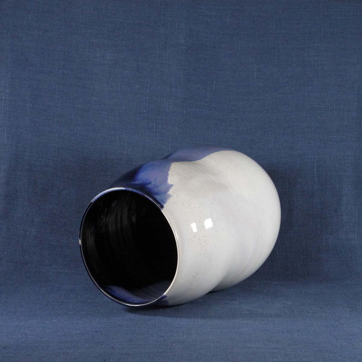 Vase en grès tourné et émaillé bleu cobalt et blanc nacré.